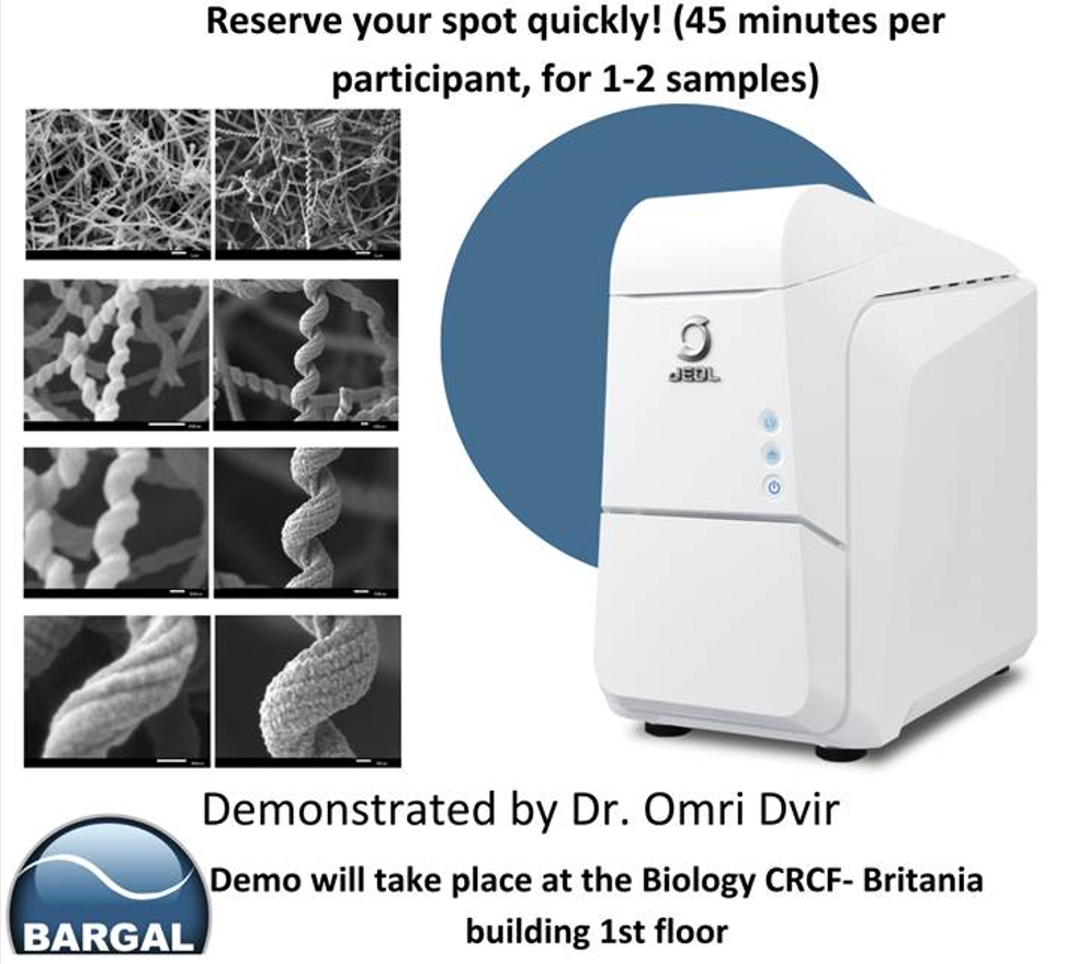 The Life Sciences CRCF unit (ZABAM) is happy to invite you to a new JEOL benchtop SEM demo, that will take place on Wednesday, September 18th at the new CRCF facility (Britannia building, 1st floor, room 103).